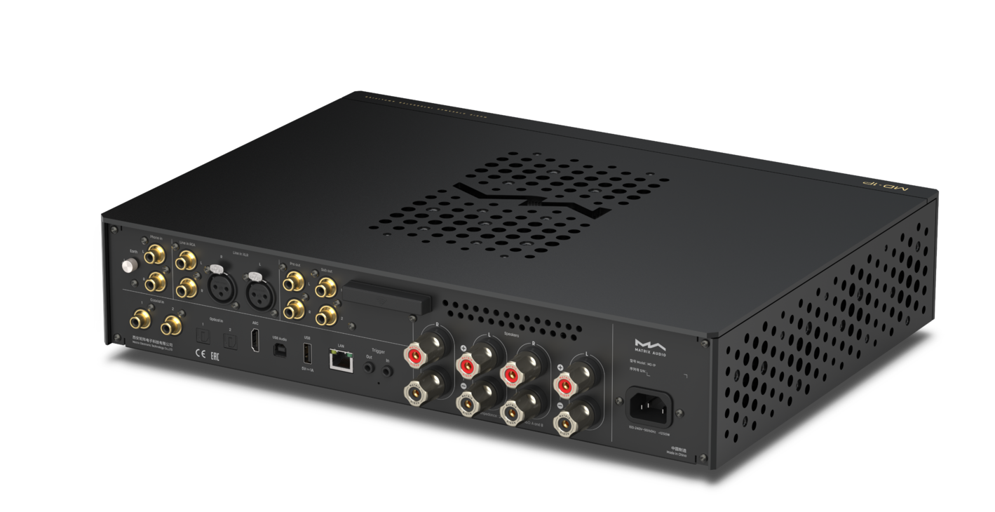Matrix Audio has launched a pair of integrated amplifiers called the MD-1 and MD-1P. Both units feature analog and digital inputs and a comprehensive suite of streaming features. The differences are apparent in the color (one black, the other silver) and the power output (one 150 watts, the other 300 watts per channel).