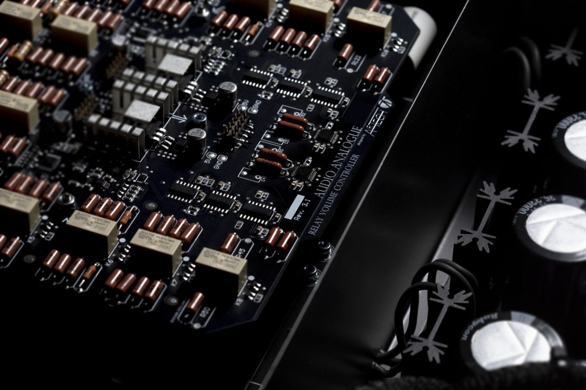 The entire signal circuit is dual mono and works without global feedback. The circuit topology works completely differential. The printed circuit boards with the signal circuits are mechanically isolated from the power supply circuits.