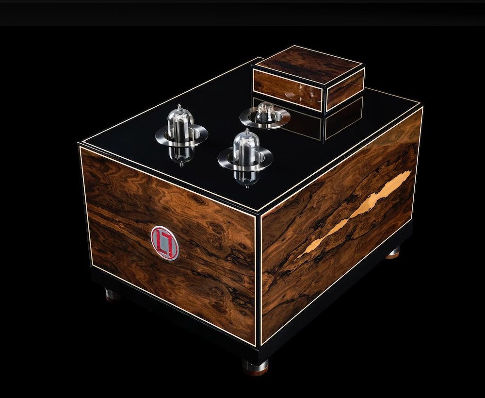 A set of high-quality power amplifiers naturally needs an equally high-quality preamplifier. The 2A3 should form the perfect companion for the 211PP mono power amplifiers. The chassis of the amplifier and the power supply of the 2A3 is also made of forty millimeter thick Panzerholz. The 2A3 tube fittings are also CNC machined from Panzerholz wood, as are the housings for the capacitors and the preamp feet. They say that no detail is skipped to achieve maximum sound quality.