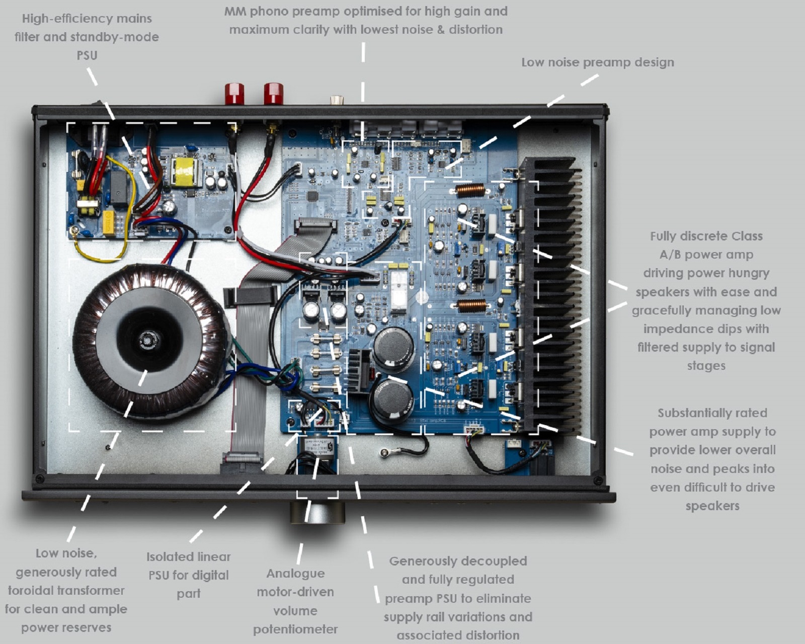 According to the press release, this new integrated amplifier features a premium amplifier design, with Class AB transistor amplifiers delivering a highly immersive, tube-like sound with a rated output power of 60 watts into eight ohms (100 watts into four ohms, 140 watts into two ohms). This should allow it to drive a wide range of speakers. Furthermore, it's said to have ample peak headroom, resulting in a wide dynamic range.