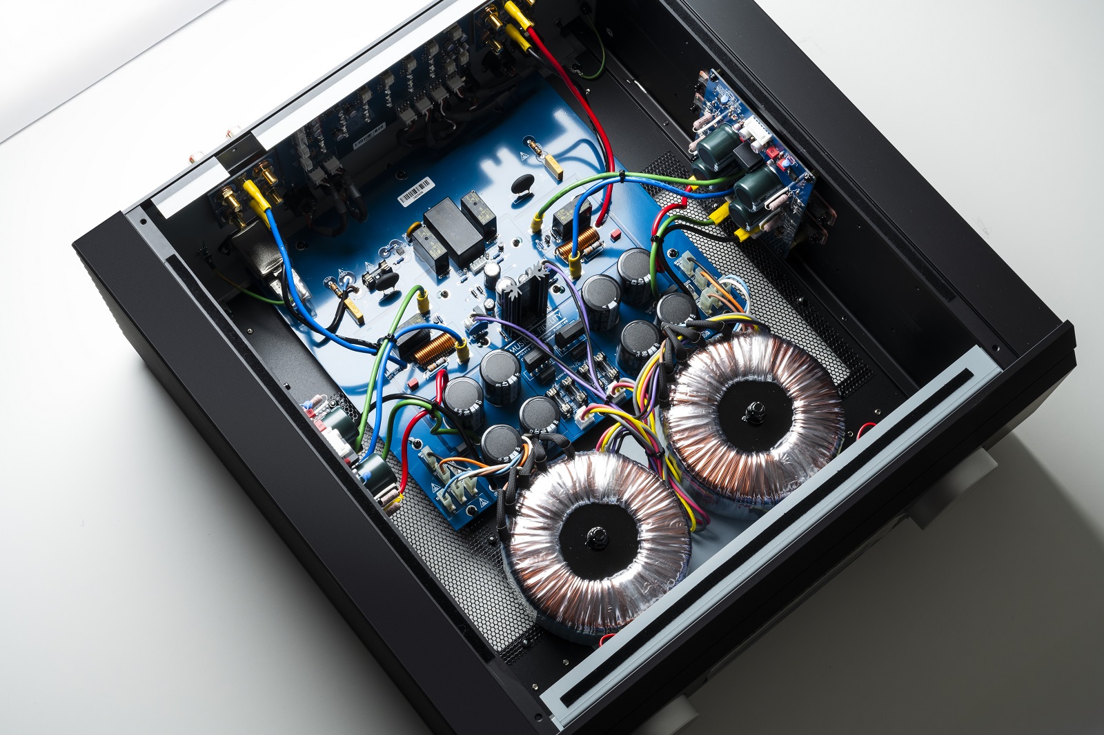 The preamplifier, NuVistor, and input circuits have been upgraded to a fully dual mono configuration, featuring distinct power supplies for the left and right channels. Additionally, the Nu-Vista 600.2 operates solely on an SMPSU while in standby mode.
