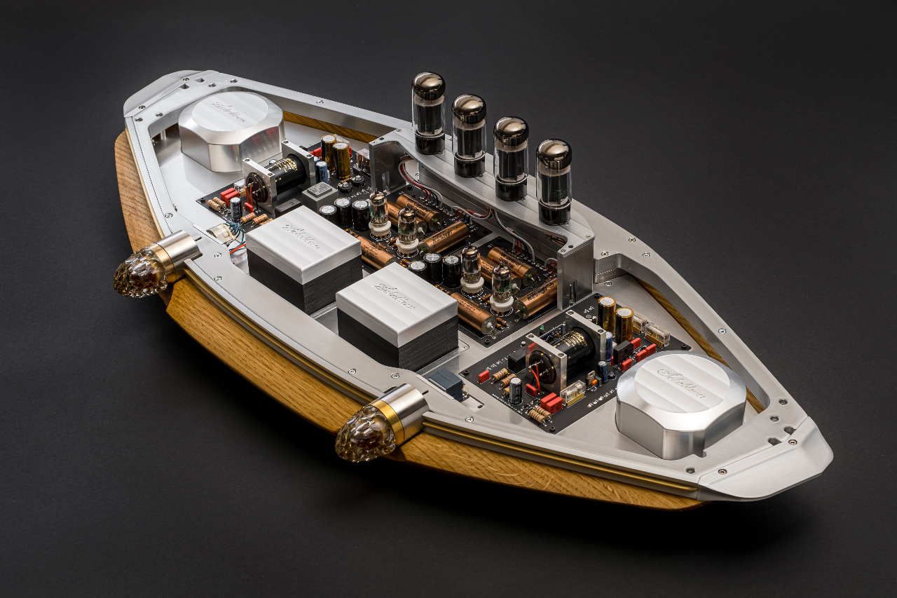 Hungarian Schablauer Audio features a limited product range, with its sole offering being a tube amplifier known as Spirit & Soul. The company provides minimal information regarding the technology and pricing of this amplifier. Recently, the Spirit & Soul has been released in an exclusive limited edition called the Whisky Edition. This model is distinguished by its wooden base crafted from whisky barrels and the incorporation of whisky in the glass knobs on the front, evoking the ambiance of a cozy fire paired with a glass of single malt.