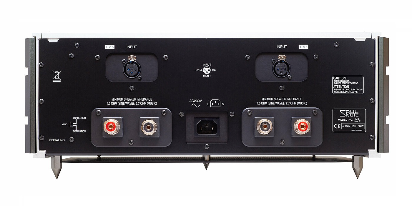 Soulnote has incorporated the ground isolation feature of the P-3 preamp into the A-3 integrated amplifier. This principle is also applied in the A-3 Core. Each channel, left and right, is powered by its own 700 Watt toroidal transformer. The amplifier employs straightforward non-NFB circuitry along with an optimized design for all components, ensuring that the amplifier cabinet remains ground-free. This design minimizes high-current loops and reduces the necessity for coils.