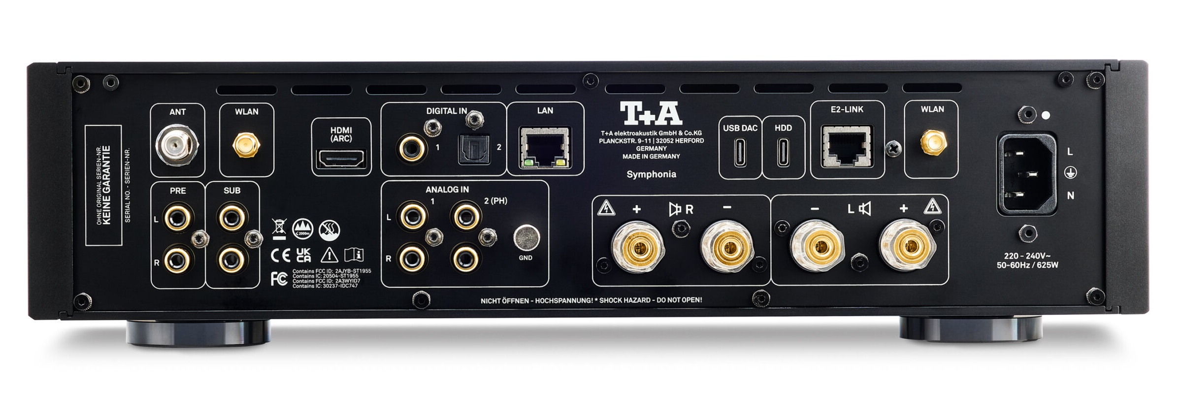 The Symphonia is equipped with custom-designed power amplifiers that utilize the innovative Purifi Eigentakt technology. Developed by a Danish tech firm, T+A asserts that this platform represents the pinnacle of Class D amplifier design, effectively addressing the challenges that have historically hindered other Class D models through a consistent technological framework. Traditionally, Class D amplifiers faced issues such as high load dependency, distortion, phase noise, and increased distortion at elevated power levels. However, the amplifier technology featured in the Symphonia is distinguished by an exceptionally low distortion factor and minimal intermodulation distortion, irrespective of power levels, as noted by T+A.