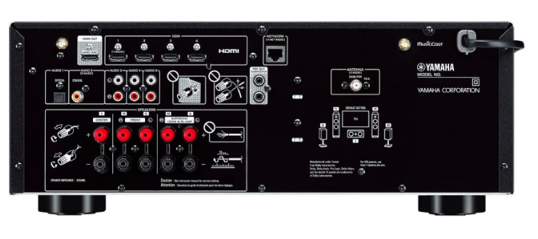 The Yamaha RX-V4A is a 5.1 channel amplifier with state-of-the-art HDMI jacks, a full suite of networking capabilities, analog and digital inputs for various audio sources, FM and DAB radio, and flexible amplification channel management. It also has the ability to use active network speaker speakers from the Yamaha MusicCast series as surround speakers. The five channels of amplification can be used in many ways.