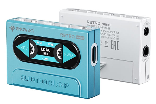 Under its new sub-brand Snowsky, China's FiiO has launched a portable DAC named Retro Nano. One of its most eye-catching features is the animation of a spinning cassette tape on the device's 0.96-inch TFT display (80 x 160 pixels) when it processes digital music signals via Bluetooth or USB.