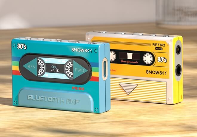 The Snowsky Retro Nano resembles a Walkman, the compact portable cassette player first created by Sony in the 1980s. However, it is actually a portable DAC and headphone amplifier designed to mimic the classic Walkman aesthetic. This imitation is taken to the next level with an animated spinning cassette deck displayed on the central screen while music is playing. Is it practical? Not really. Is it amusing? Absolutely.