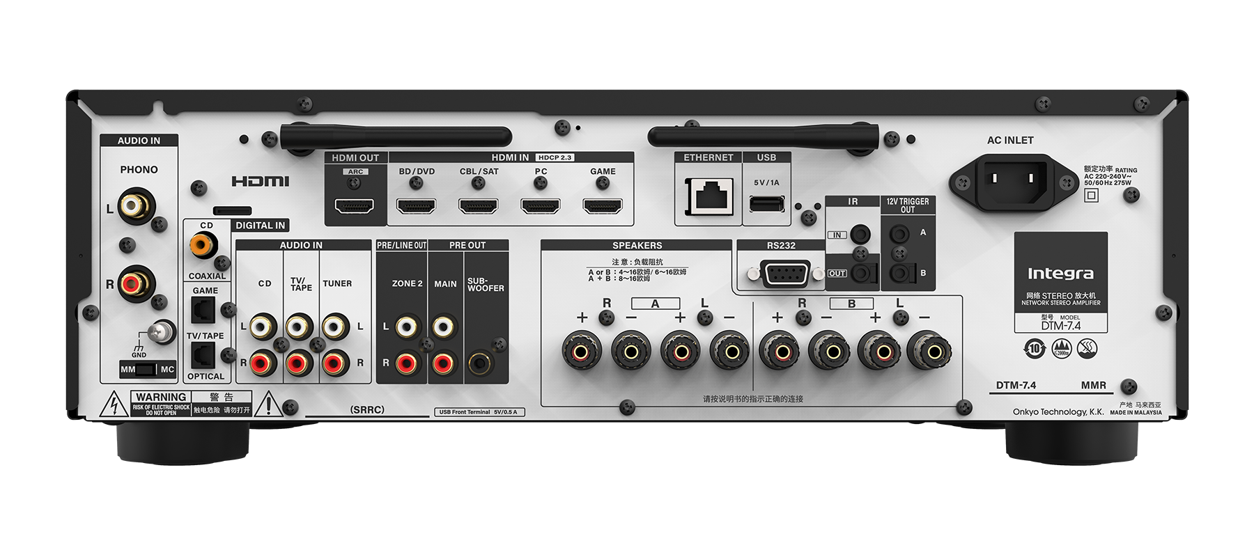 Integra is a sister brand of Onkyo and is owned by Premium Audio Co., an investment company that owns the Klipsch brands, among others. Jamo, Magnat, Heco, Pioneer, Onkyo and Integra. The Integra DTM-7.4 has many similarities with the Onkyo TX-8470. The big difference is that the Integra DTM-7.4 offers all kinds of options that are interesting if the user wants to integrate the stereo receiver into a home automation system.