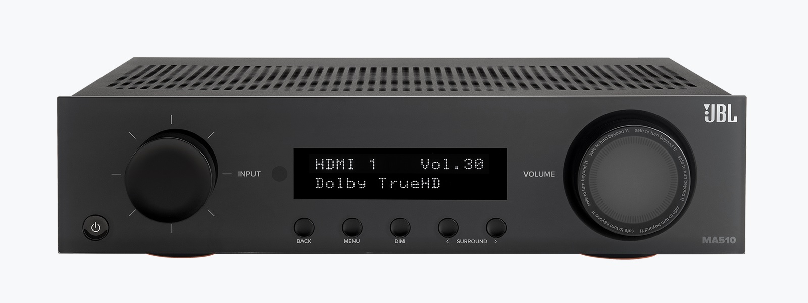 All models in the JBL MA product line feature similar technologies to support high-performance sound, including Class D amplification to power all channels, Dolby and DTS decoding, and high-resolution 24-bit/192 kHz DACs. With audio quality and a focus on ease of use, the MA Series models offer the flexibility of a wide range of inputs for two-channel and multi-channel sources.
