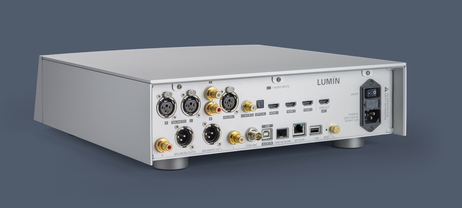 The DAC is closer to Lumïn's reference models and uses two ESS ES9038PRO SABRE DAC chips in a dual-mono configuration. The analog output stage also borrows elements from the company's top models, with Lundahl output transformers intended to maintain signal isolation and channel separation.