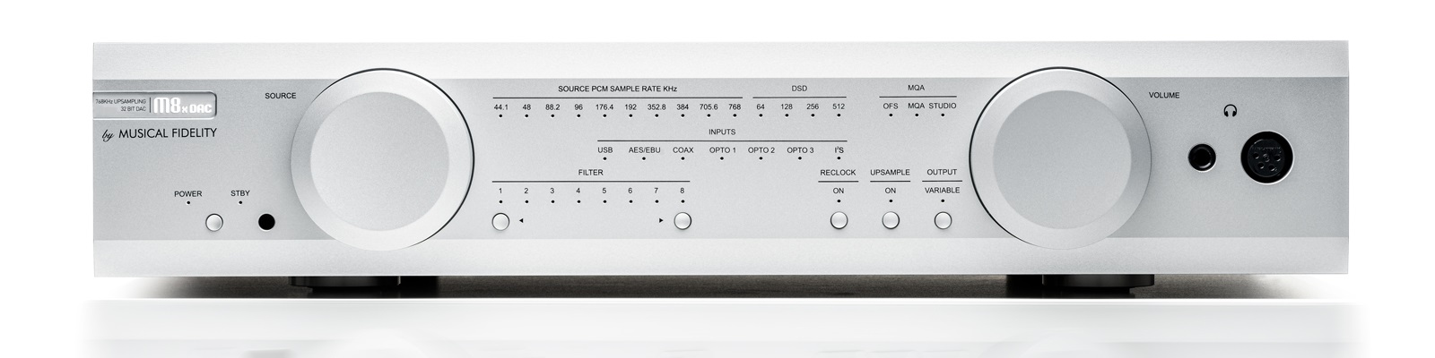 Musical Fidelity has implemented sophisticated reclocking and upsampling technologies to enhance accuracy by reducing jitter and distortion. By selecting filter 8, users can activate the oversampling bypass mode, allowing the DAC to handle native high-resolution signals with minimal digital processing, which the company claims leads to a purer sound.
