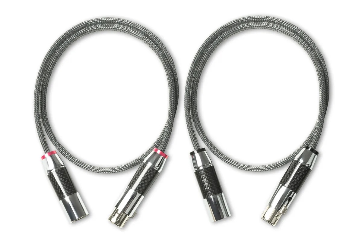The Connect-It RS is the flagship cable, with a halogen-free TPE jacket, silver-plated OFC helix shielding with carbon sub-jacket and matching crystal silver conductors. Made in Europe, the cables feature rhodium-plated copper signal pins covered by a non-conductive carbon housing. The dielectric used for the RS cable is the same flexible cell polyethylene as in the DS cable.