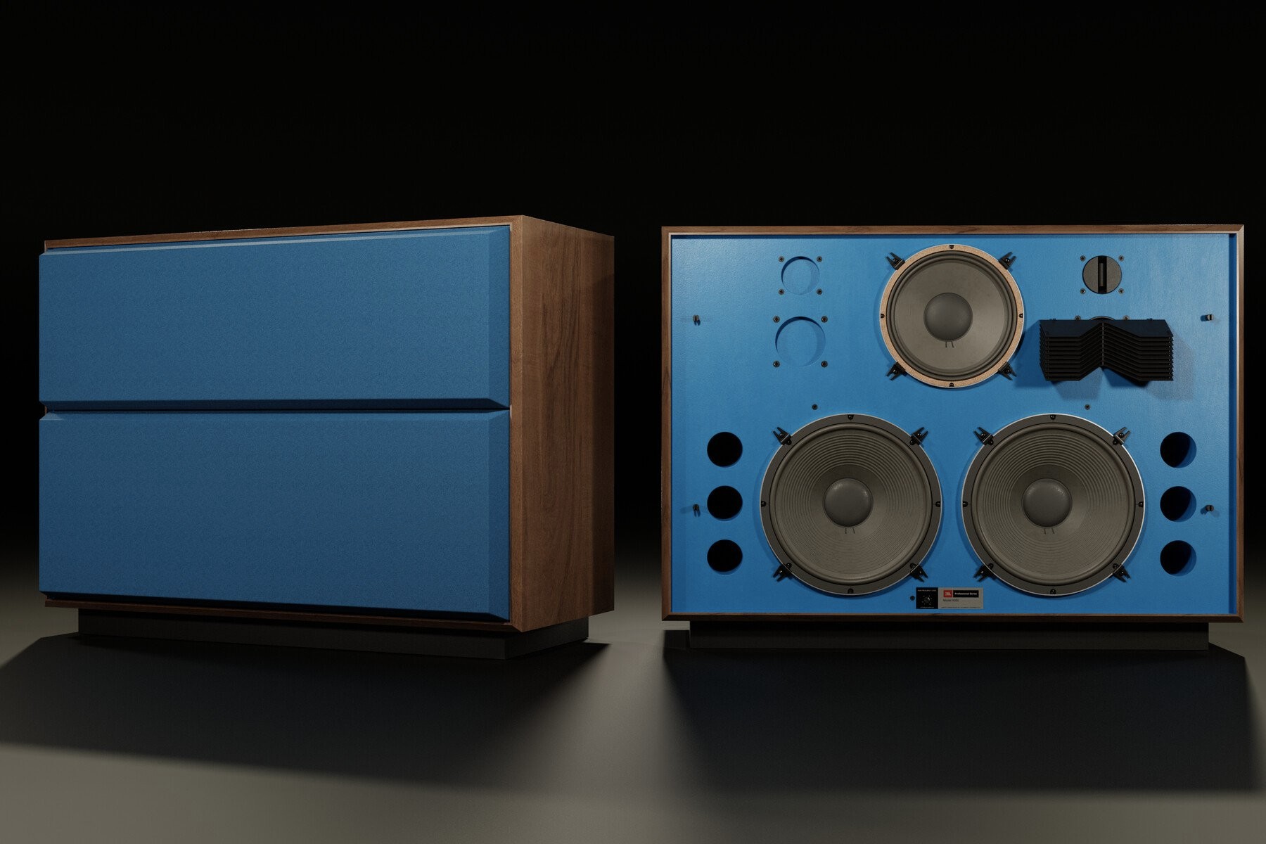The JBL 4350, a top speaker in JBL's professional blue series, made its debut in 1978. Initially finding a home in studios, these acoustic systems gained popularity among music lovers for home use in the 21st century, and for good reason. Few speakers can compare with the 4350 in terms of pressure and bass intelligibility. This four-band system operates within a frequency response from 30 to 20,000 Hz, boasting a sensitivity of 95.5 dB and weighing 110 kg. Featuring two 38 cm JBL 2231A woofers, capable of reaching up to 126 dB of sound pressure, and a frequency response starting from 30 Hz, the JBL 4350 stands out as a powerhouse in the world of speakers.
