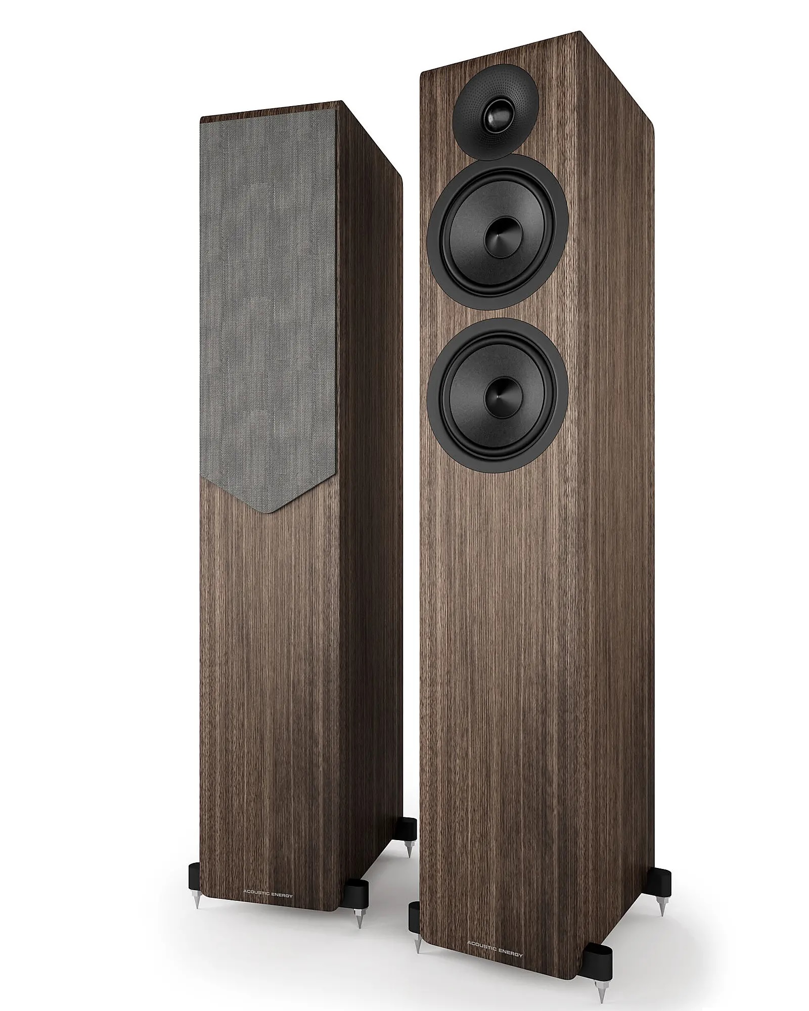 Acoustic Energy has transitioned from the high-gloss finishes of the former 300 Series to a newly engineered, exceptionally durable silky-matte material, complemented by premium grille fabrics. This change results in a contemporary design that retains the unique identity of Acoustic Energy.