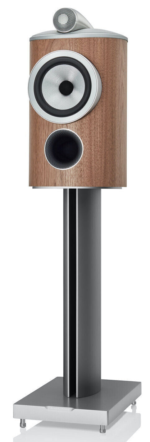 The HTM82 D4 center channel acoustics received a similar design. The 804 D4 also added a downward-facing bass reflex port and an aluminum base, also taken from the older models. The 801 D4 has a stainless steel port plate.