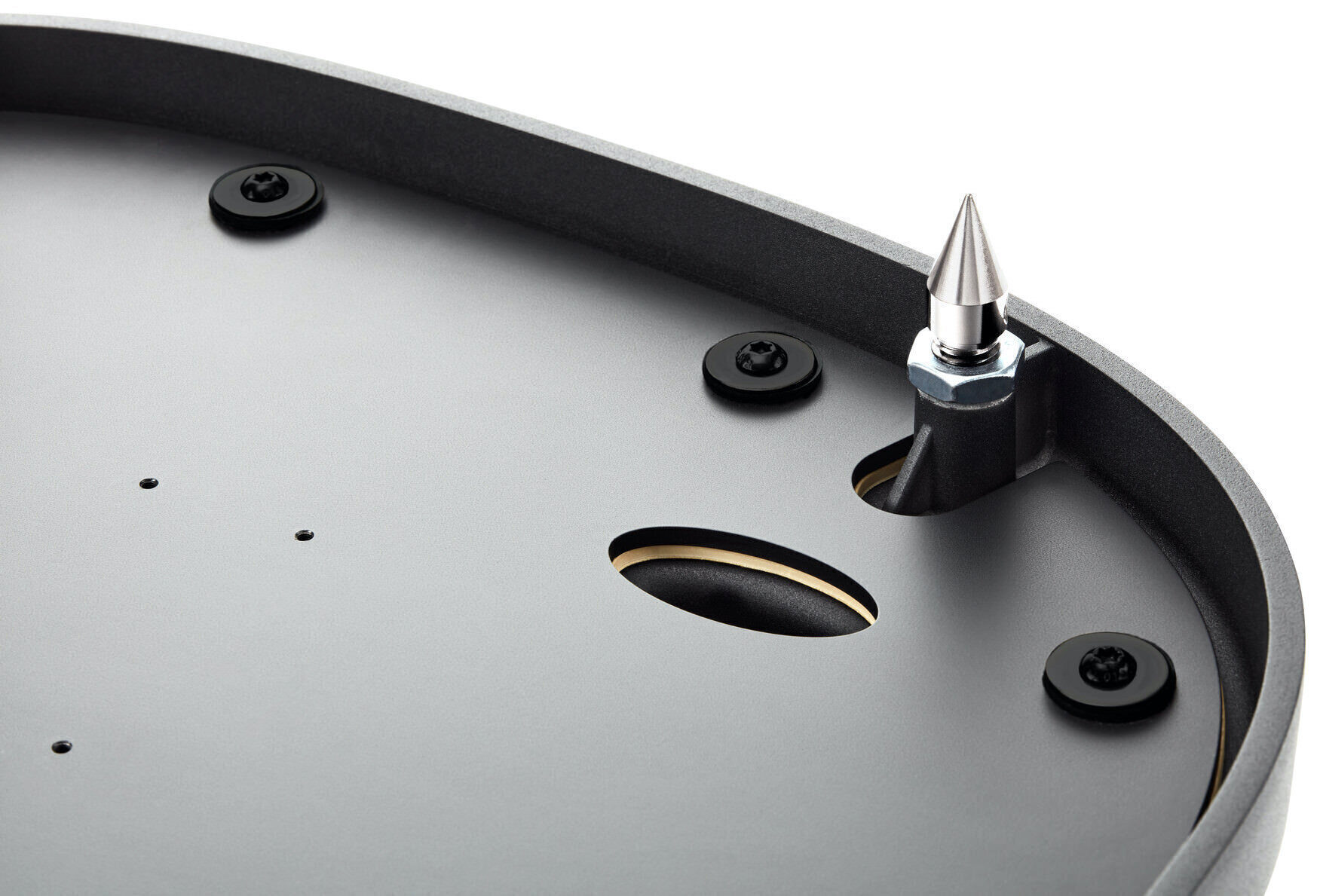And the new two-point vibration isolation system effectively isolates it from the main part of the column. As before, this element is machined from a single piece of aluminum, but in the new generation of acoustics, anodizing will be used as a design.