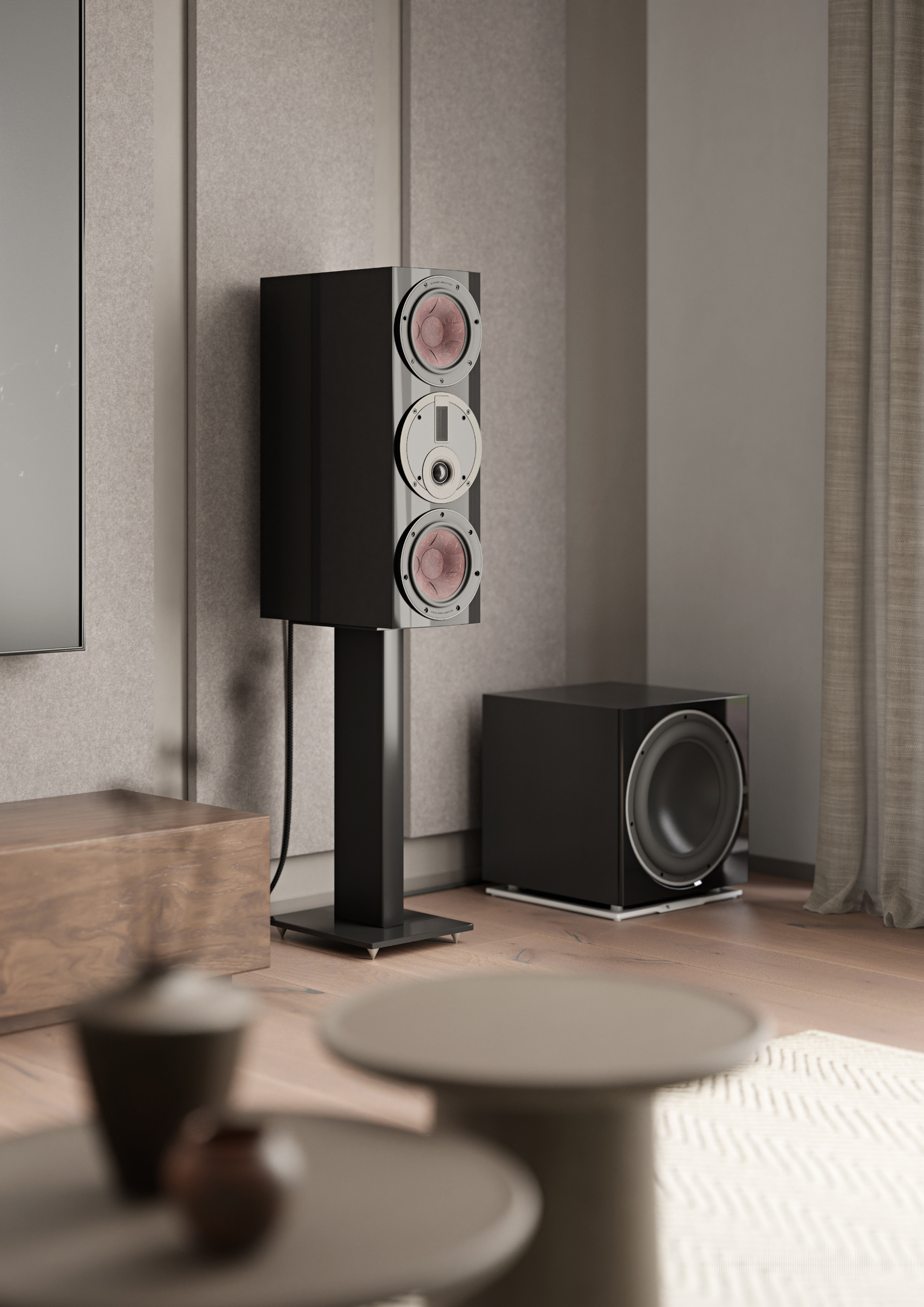 The Rubikore series speakers are an example of the rich Danish tradition in fine carpentry and furniture making. They combine aesthetic beauty with practical functionality; Their carefully crafted and robustly reinforced housings provide an extremely stable base for the drivers, where elegance and performance come together.