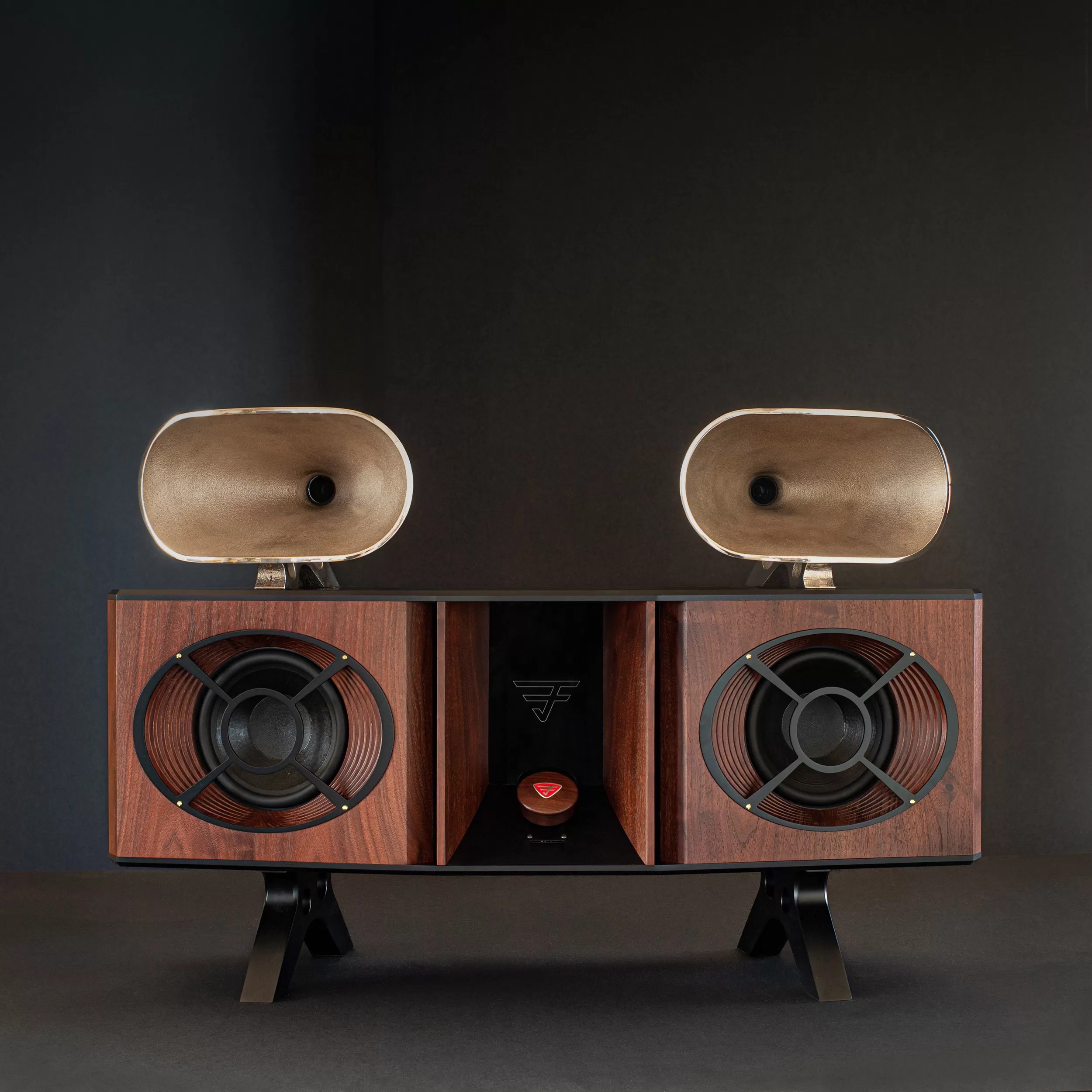 The Excelsior SQ (Superior Quality) takes the original model to unparalleled heights with its significant enhancements. It features oversized solid, cast bronze horns that are meticulously polished by hand, bodies crafted from ancient reclaimed wood, and superior internal components. This model epitomizes a “cost no object” approach to creating a speaker of its size and type, a novel entry in the audio world.