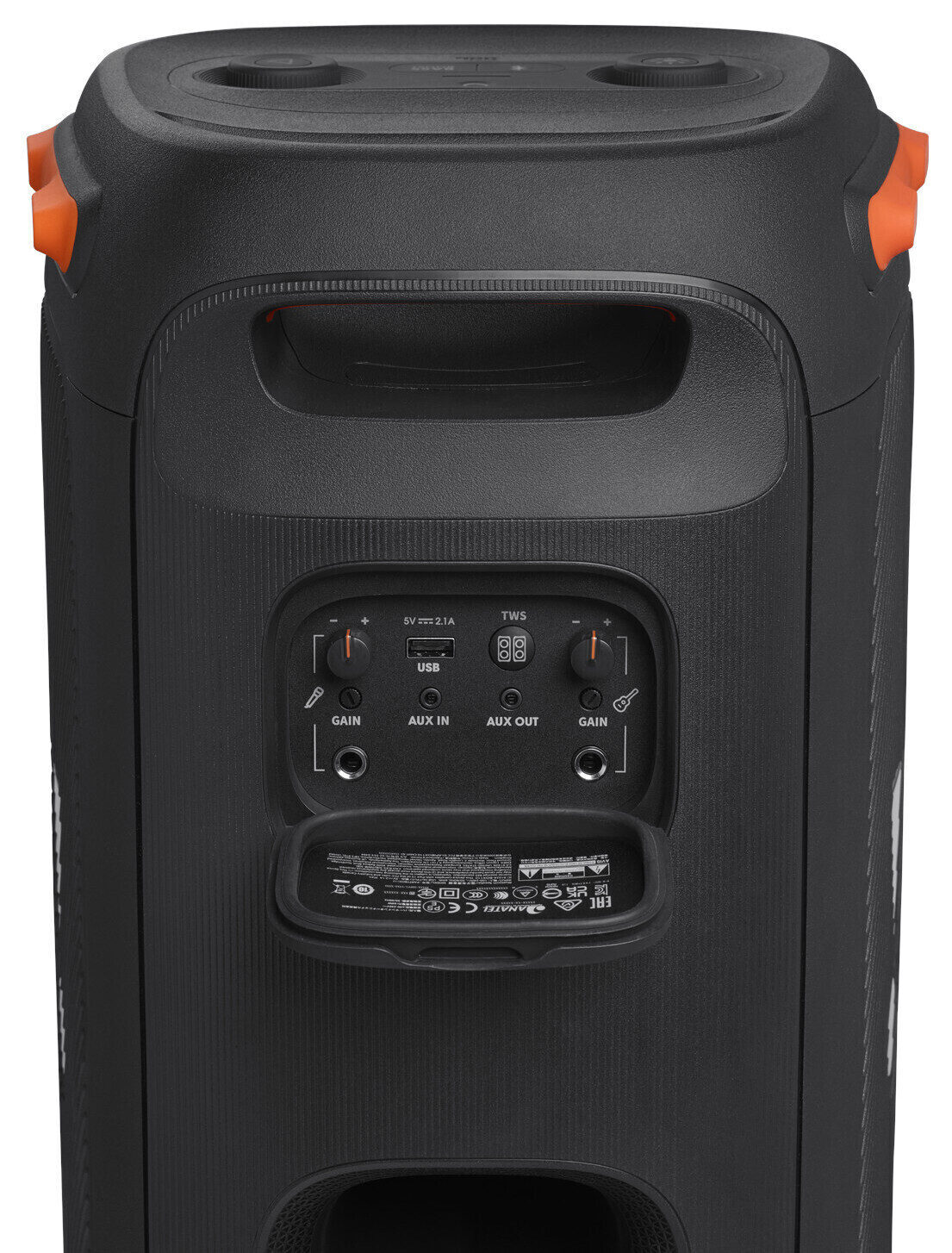 True Wireless Stereo mode lets you pair two JBL PartyBox 110s into a stereo pair. It is also possible to create a “battery” of active acoustics using a cable with 3.5 mm mini-Jack connectors.