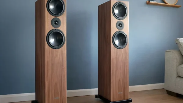 Klipsch Flexus Sur 100 – bookshelf speaker. Wireless rear speaker system. Acoustics are presented in the body finish wood grain with metal mesh and black fabric grille. The addition of Klipsch Flexus Surround speakers enhances your home theater performance with Dolby Atmos technology, creating a true multi-channel surround sound system, you will hear music, movies and games placed in 3D around you and above you, creating. realistic, multi-dimensional impression.