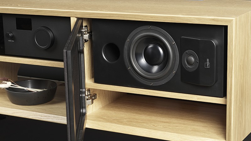 The Lyngdorf CS-1 speaker represents a new approach to high-fidelity audio design, crafted as a compact full-range loudspeaker that seamlessly integrates into the aesthetic and functional confines of interior spaces. This speaker is tailor-made for unobtrusive integration within various types of furniture, such as lowboards, sideboards, and TV units, ensuring a harmonious blend of design and sound quality without compromising on either.