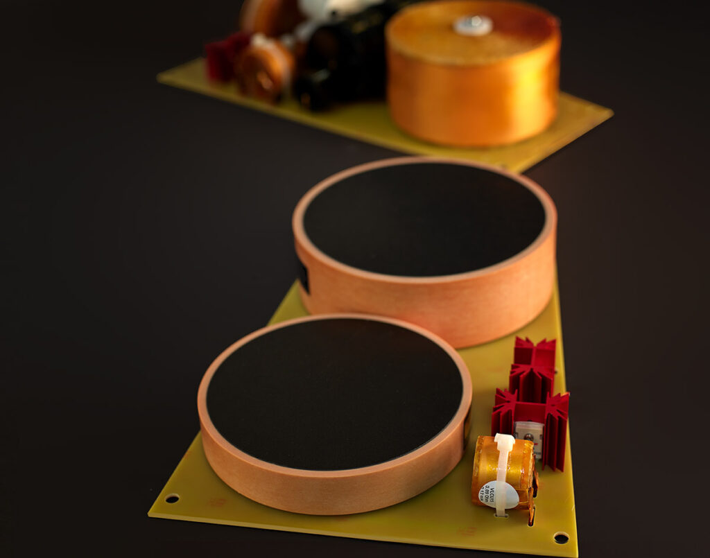 The speaker is supported by a new frame design and foam around the cone, allowing for perfect integration of the speaker elements. The result was a quick return of the cone to its original position and minimal sound distortion.