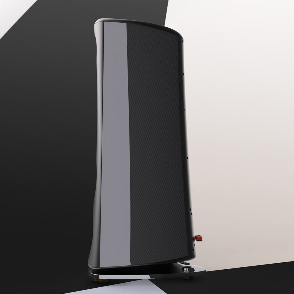 A custom support system has been developed specifically for the M7 using MPOD technology to ensure a completely stable position on the floor, eliminating noise and ensuring a perfect connection to the floor. Additionally, the M7's support system offers a subtle visual contrast to the carbon fiber and aluminum body.