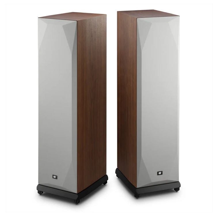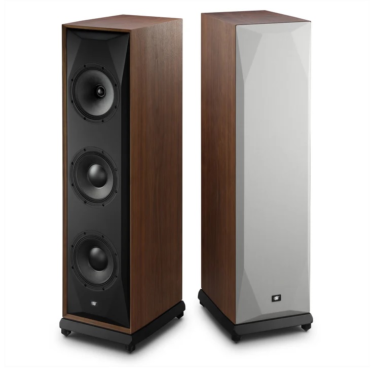 - Available finishes: satin black lacquered baffle with satin real walnut or black ash veneer