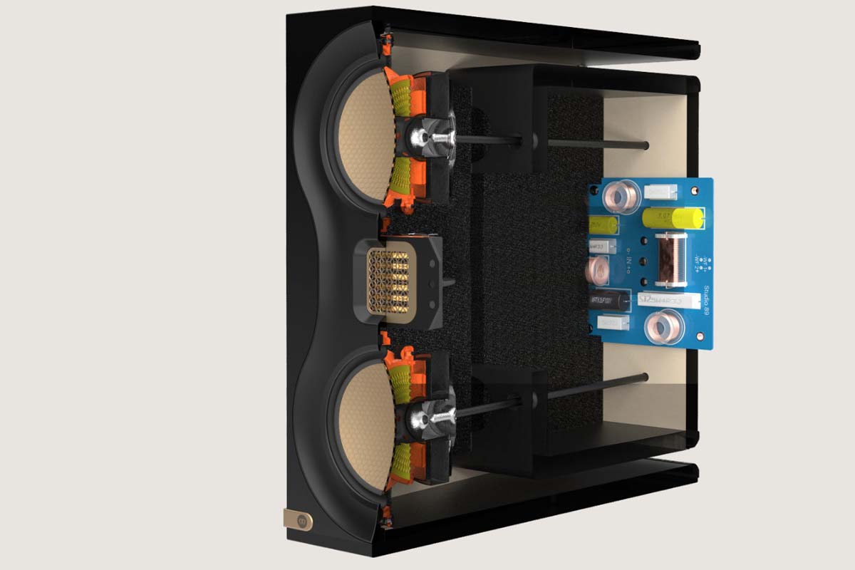 Each driver must fit harmoniously into the configuration and the frequency transitions must be seamless and imperceptible. Therefore, after hours of listening and rigorous component selection, the crossovers were equipped with only the finest custom-made polypropylene and polyester capacitors and low-loss laminated steel air-core coils to ensure an immersive sound experience.
