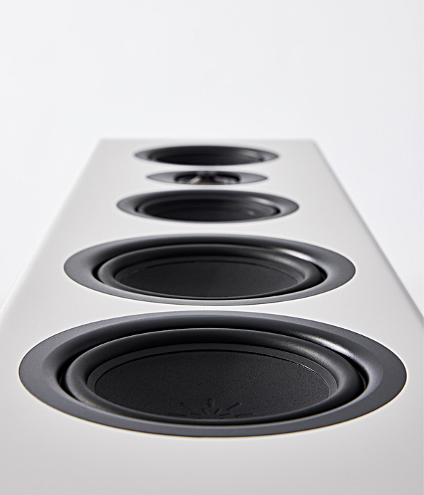 The new Pulsar S 130 showcases T+A's contemporary design philosophy of “classic modernity.” Its visually striking profile features a gently sloping, steep front that seamlessly incorporates four drivers and a tweeter, eliminating the need for external attachments or screws. This design approach is intended to prevent frequency response irregularities and ensure a consistently harmonious sound, as emphasized by the designers.