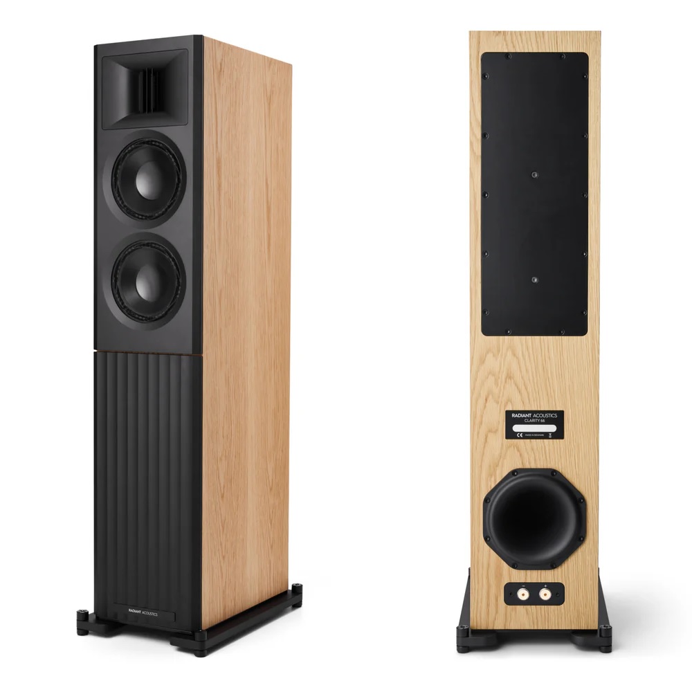 Delivery of the Radiant Acoustics Clarity 66 is expected to begin in the course of April. The buyer can choose from three finishes: walnut, matte black, and oak. The price is just under $8,000 per pair.