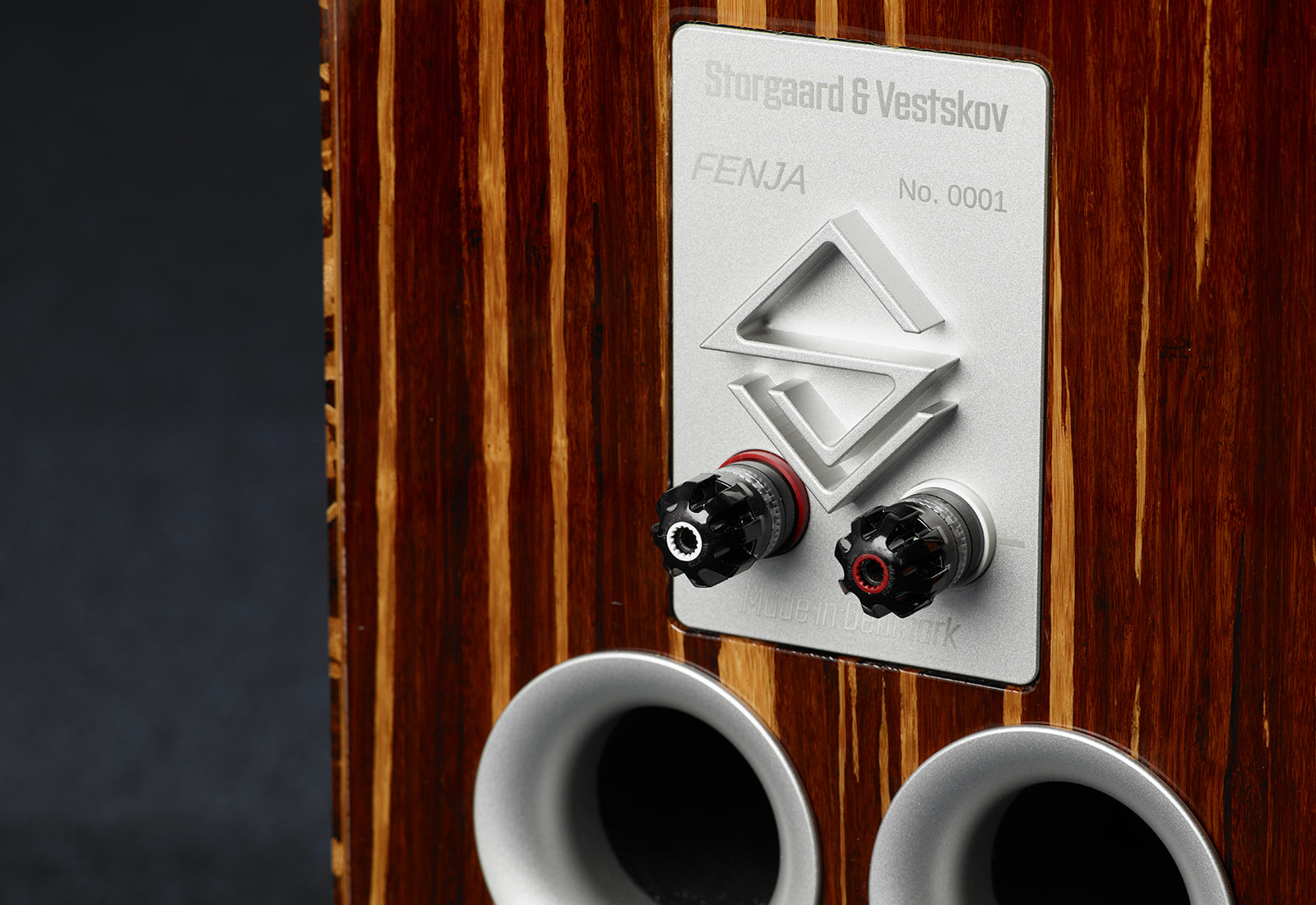 The Fenja cabinets are made from 26mm thick, 5-layer solid tiger bamboo. The front baffles are built using 5-axis CNC machines with aircraft aluminum, featuring a special pattern that minimizes reflections and improves clarity.