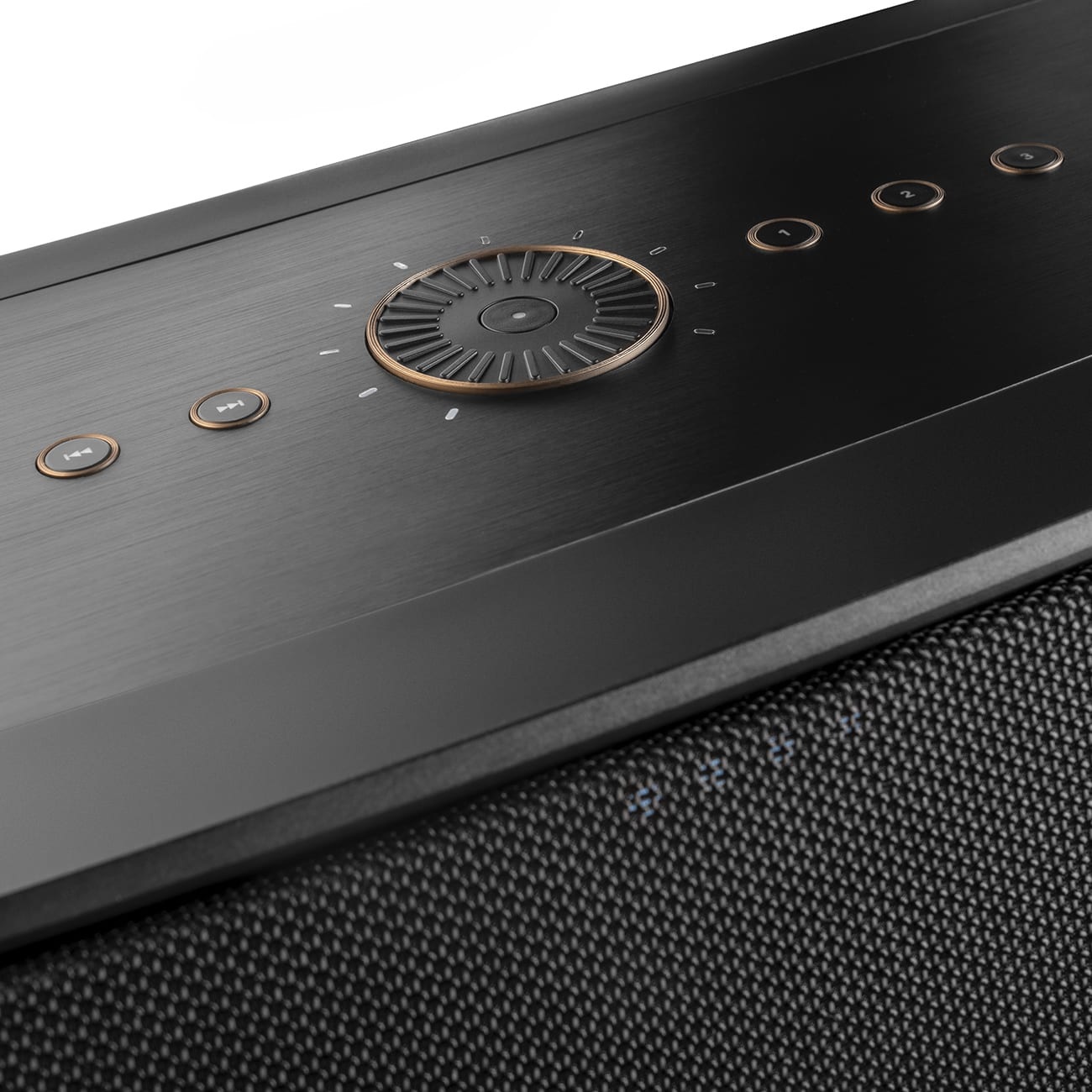 Inside the Motiv XL, a digital-to-analog converter with up to 24-bit/96 kHz resolution and powerful Class D amplifiers with a total RMS output of 210 watts ensure crystal-clear sound and high impulse fidelity. According to the designers, the Dynamore technology developed by Teufel also guarantees a stunningly beautiful stereo panorama.