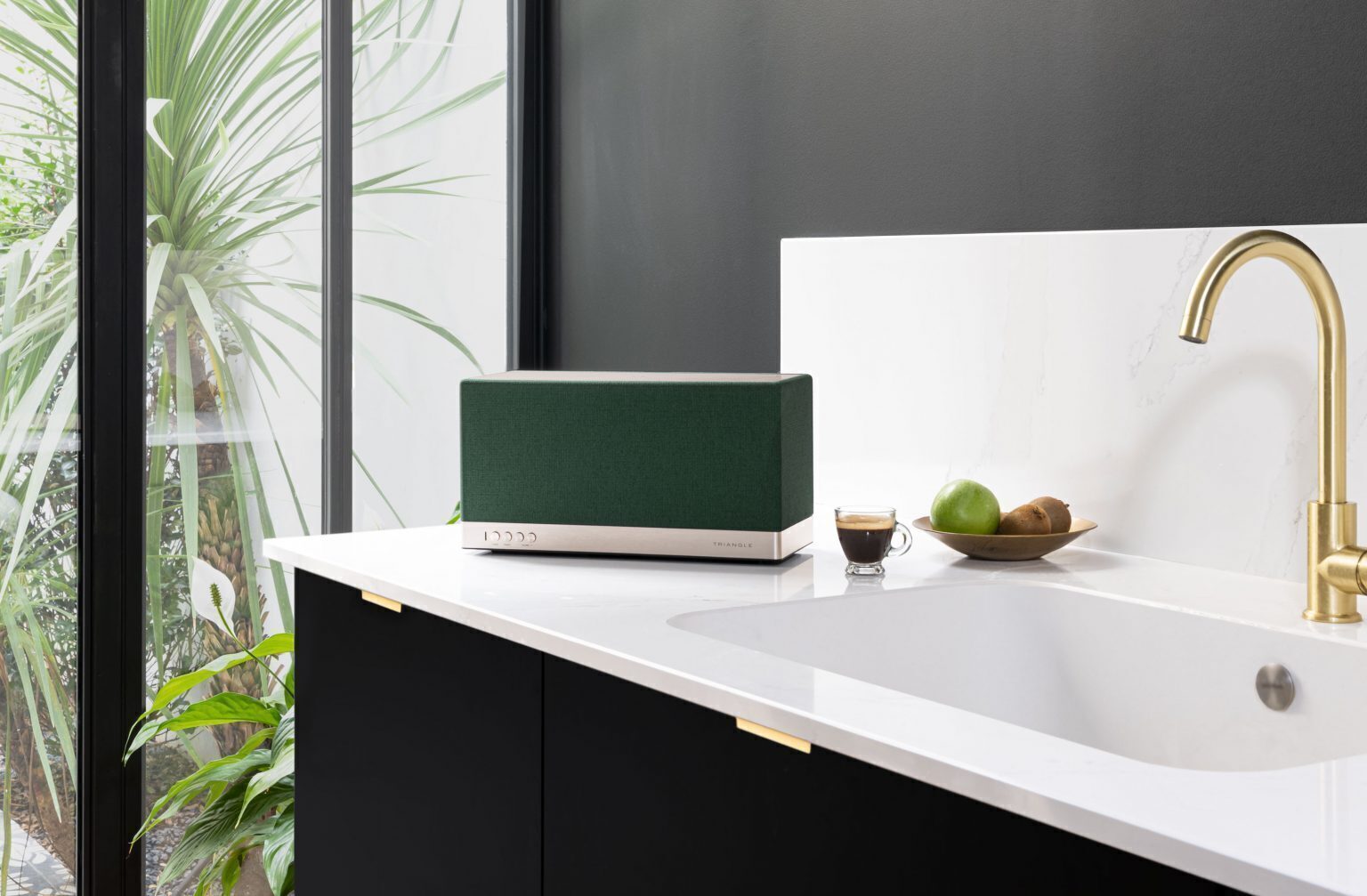 The body of the Triangle AIO 3 is made of wood, which, however, is hidden under a textile coating from the Scandinavian company Gabriel in the colors Powder Pink, Frosted White, Forest Green and Ocher Red – it is in them that the spring version of the column was released. Also available in Slate Gray and Blue.