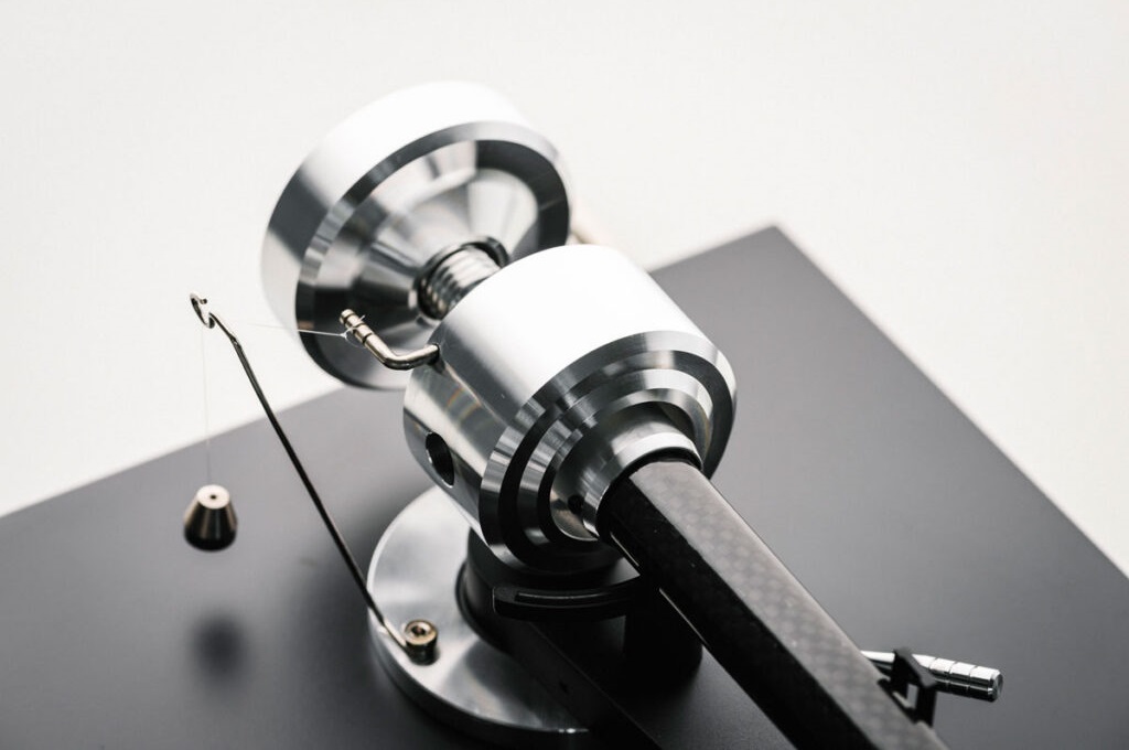 Below this, three TPE-damped, height-adjustable feet form a stable, low-resonance base. Pro-Ject Audio deliberately opted for a three-point system instead of four feet, claiming this offers better stability on uneven surfaces and is easier to level.