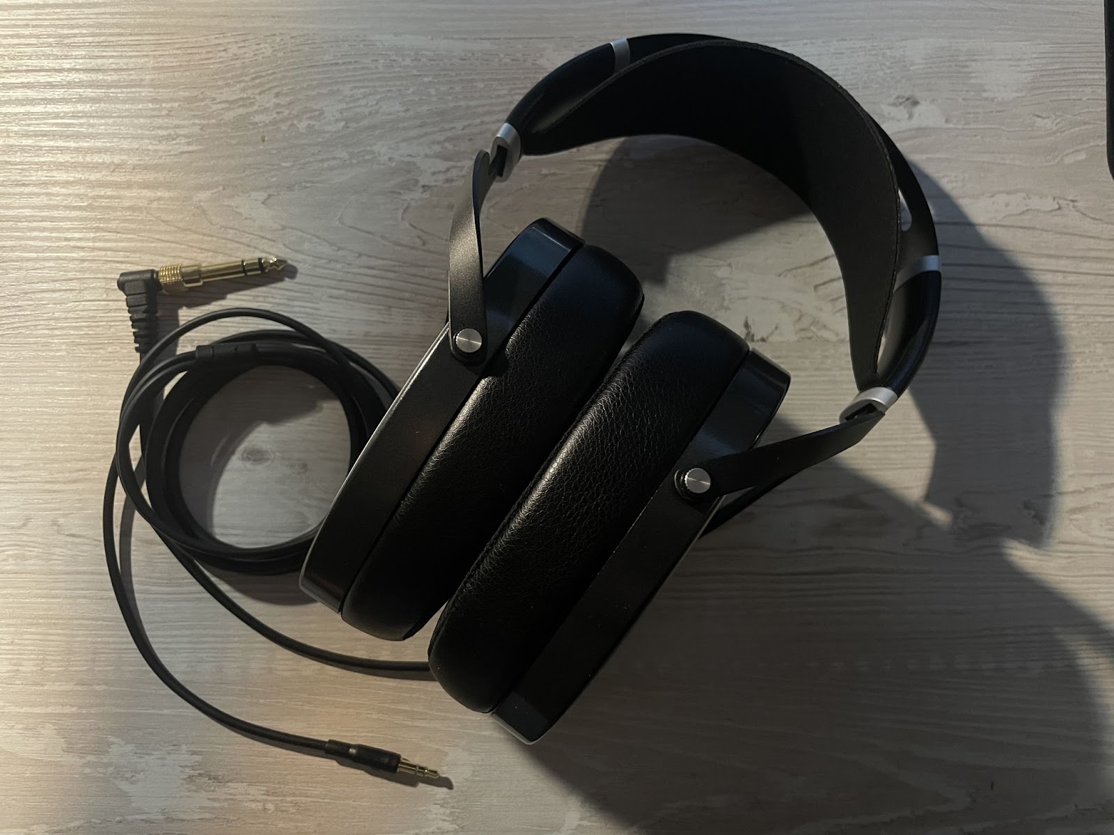 The cups are not perfectly round, but slightly elongated, which may cause discomfort for some users. The ear pads are well-constructed, albeit hard and thin. Personally, I find them comfortable enough, but don't expect the same level of softness as Audeze headphones. The fact that the ear pads are removable and replaceable is a definite plus. The headband is designed separately from the frame, so it doesn't exert pressure. It's a bit disappointing that there are no hinges for swiveling the ear cups. However, other aspects of the headphones do not raise any concerns. Many users have complained about the cable in forums and reviews. While it may not be the most aesthetically pleasing, it serves its purpose in the basic setup. The cable is modular and can be easily replaced. I recommend considering a copper cable, as silver will enhance the high frequencies and planar sound even further. If budget allows, gold is also an option, as the material of the cable can impact the overall sound quality.