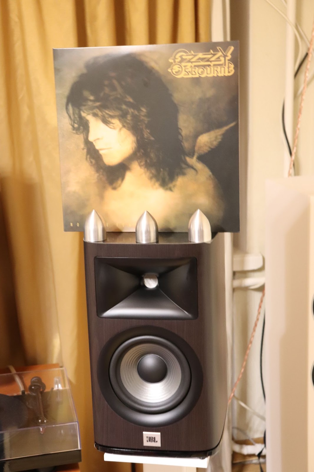 Utilizing a vinyl record player to enhance the auditory experience with Ozzy Osbourne's “No More Tears,” the JBL Studio 630 speakers demonstrated their fidelity to detail immediately. The precision of the compression tweeter meant that any presence of dust on the vinyl was unforgiving, necessitating a pause for a more meticulous cleaning after just a couple of minutes of playback. As soon as the music resumed, with Zakk Wylde's guitar riffs setting the tone, it was evident that these speakers excel at delivering the essence of rock music.