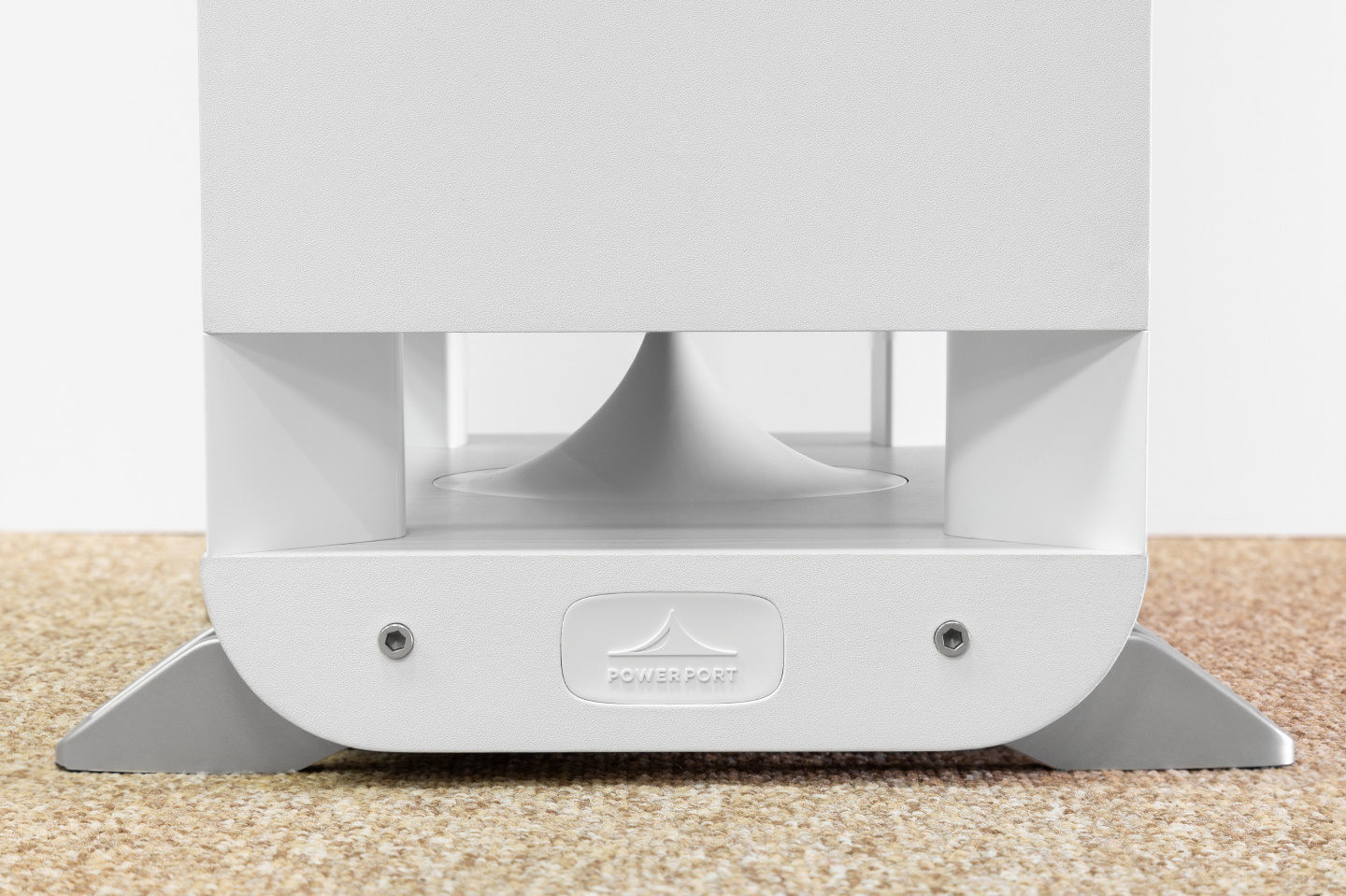 The core objective behind the design is to enlarge the port's cross-section, thereby ensuring a laminar airflow without turbulent disturbances. This approach lays the foundation for the S60's bass sound, characterized by its clarity and depth. The speaker's design, including the four supports positioned at the corners and even the grill covering the front, is meticulously crafted to not interfere with the circular radiation pattern. This design philosophy significantly minimizes the effect of the speaker's placement on its bass performance, offering greater flexibility in room positioning without compromising sound quality.