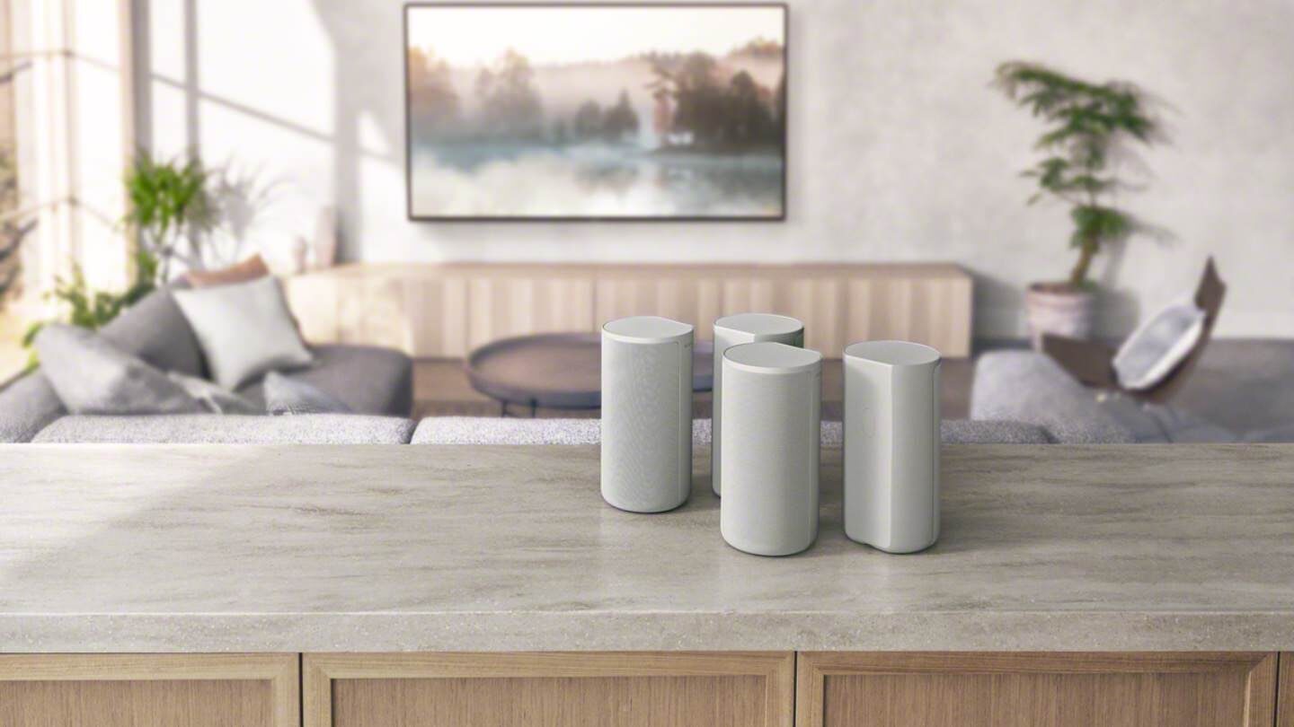 Four speakers from the Sony HT-A9 wireless kit are capable of emulating 12 virtual sound sources with support for Dolby Atmos and DTS: X. The location of the phantom speakers does not depend on the real ones – there is no need to worry about their exact placement. The software Easy Setup takes care of the system setup. It uses microphones located in speakers – two in each – to create a sound field and correct the room.