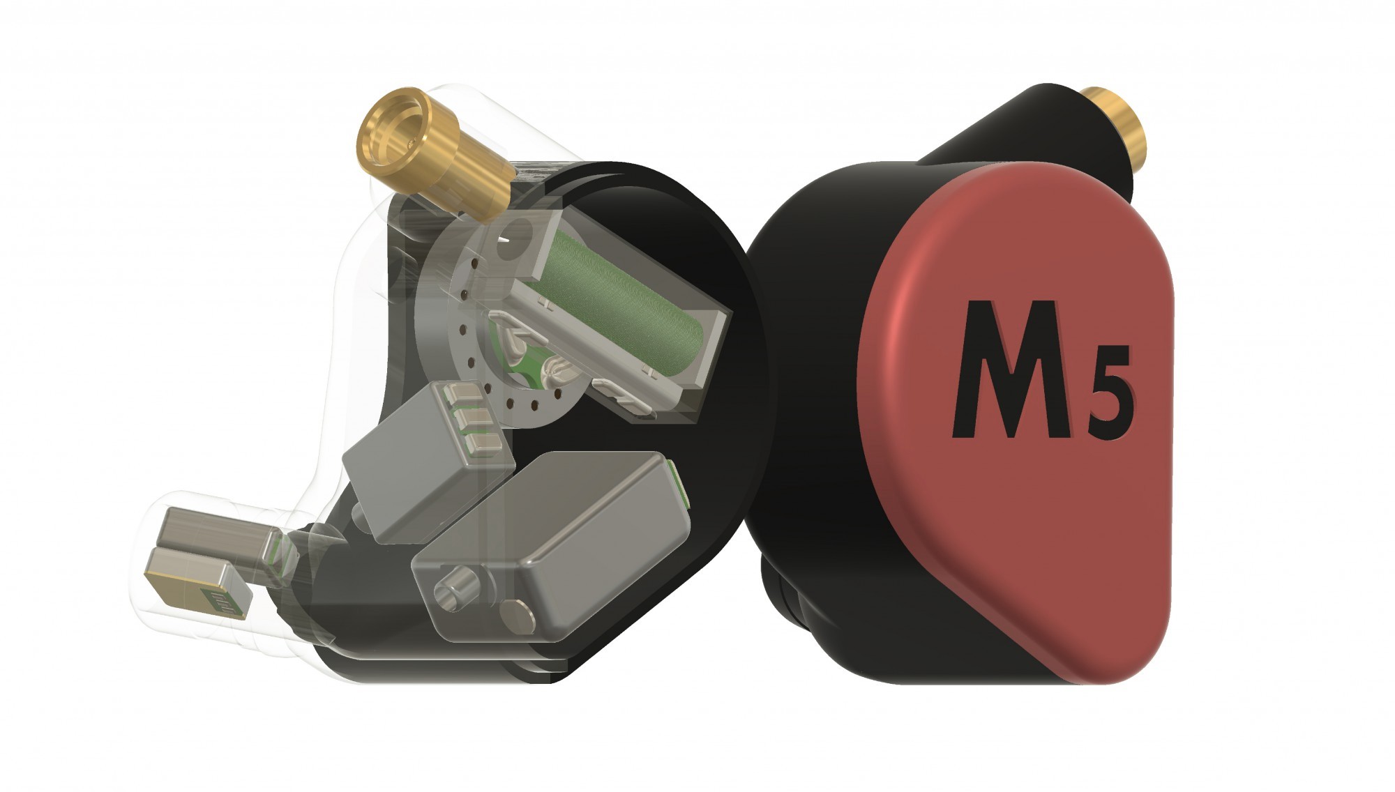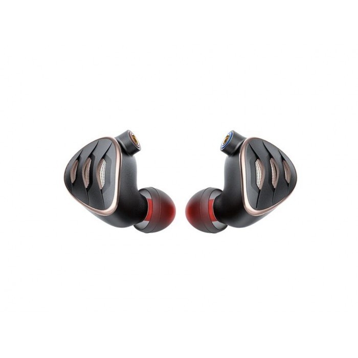 The model is a doubly updated version of the popular FiiO FH5. The speaker configuration here is four-driver, it includes a Tesla speaker with a beryllium-coated membrane and N52 magnets giving a field of 1.5 T for bass, a small 6 mm speaker with a beryllium coating for the middle, a Knowles TWFK30017 twin armature placed in the sound guide for upper frequencies. Luxurious design, black and gold aluminium-magnesium alloy bowls feature TRISHELL's proprietary resonance-reducing design. The acoustic design is semi-open, but the basic sound insulation is preserved. There is the possibility of self-tuning feed using switches on the housings. In the kit we get 13 pairs of different nozzles and an HB5 case, as well as the familiar eight-core FiiO LC-RC litz cable with 152 silver-plated copper conductors, having interchangeable plugs 3.5, 2.5 and 4.4 Pentaconn. Our price is about $360.