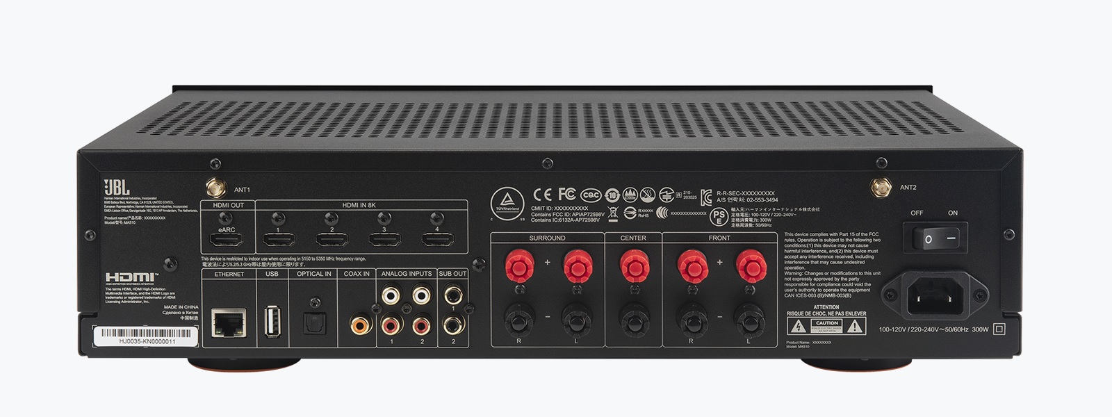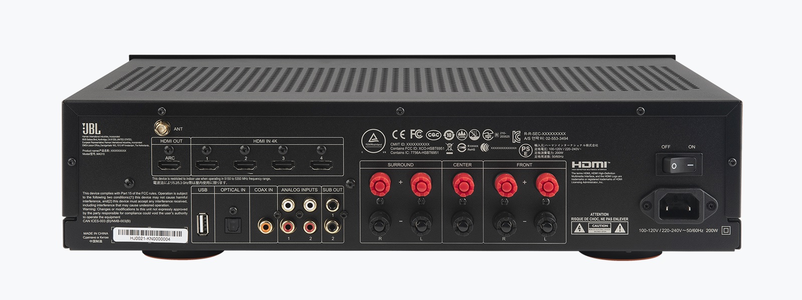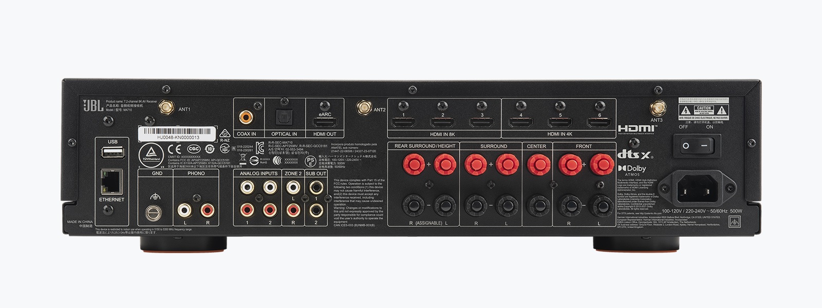 All models in the JBL MA product line feature similar technologies to support high-performance sound, including Class D amplification to power all channels, Dolby and DTS decoding, and high-resolution 24-bit/192 kHz DACs. With audio quality and a focus on ease of use, the MA Series models offer the flexibility of a wide range of inputs for two-channel and multi-channel sources.