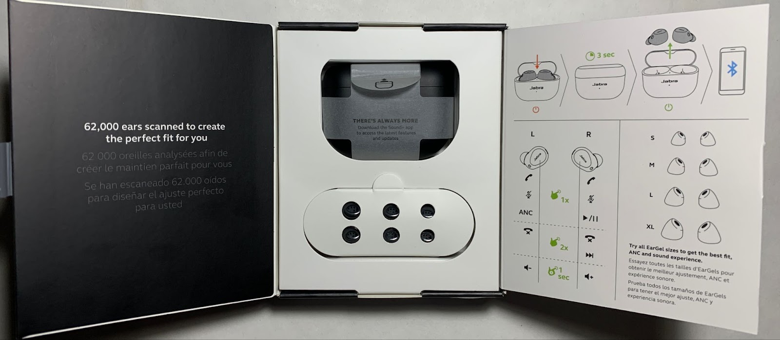 - on the left, it says that 62,000 ears were scanned to ensure a perfect fit, so that during the whole day of wearing there are no uncomfortable sensations and pressure on everyone, which is present to one degree or another in wireless headphones.